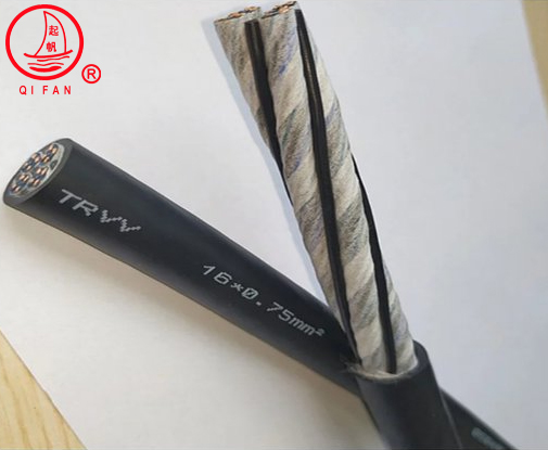 TRVVP高柔性耐彎曲屏蔽電纜 1、TRVVP柔性電纜典型應用新一代高柔性的控制和連接電纜用于測量和控制線路, 電氣設備工程的動力線路, 裝配線以及機器人技術。中、常規機械應力(可定制承受較高機械應力